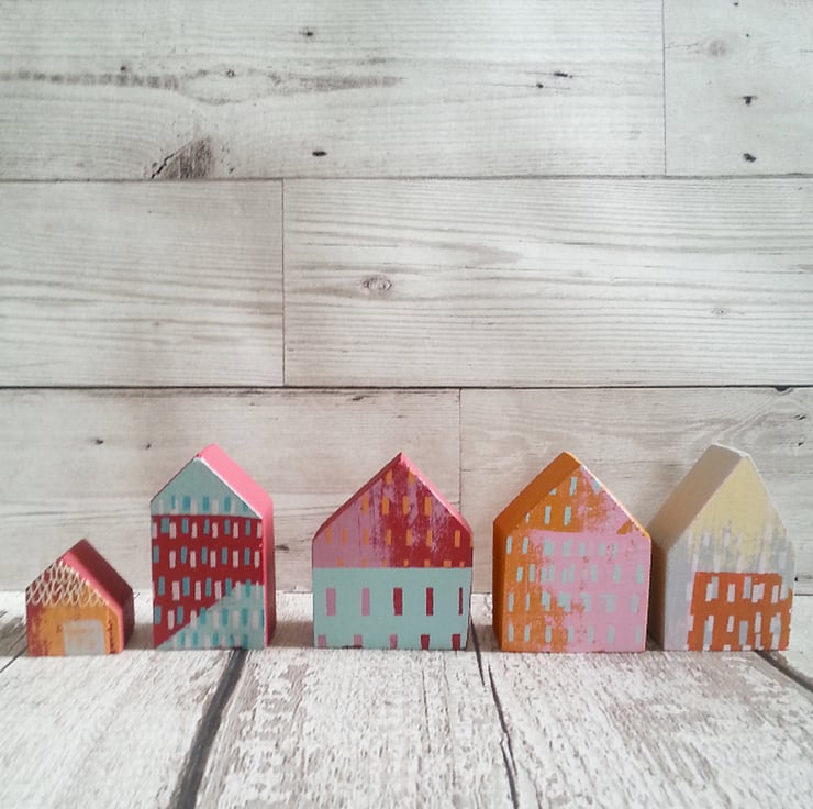 I moved to the countryside in 2019 and had been building up a stash of wood offcuts from other projects, intending to use them for firewood for the coming winter; realising that a lot of this wood was high quality pine which was too good to burn, I came up with the idea of using it to make little houses (a shape which is relatively easy to cut with limited woodworking skills/equipment). As it turns out, little houses are not only en vogue but they are the perfect canvas for experimenting with colour and pattern!