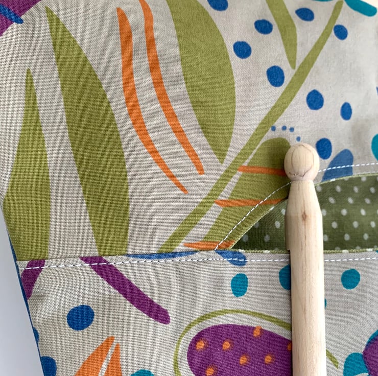 This beautiful fabric is really quirky and I have used the small piece I had left to make this one of a kind peg bag