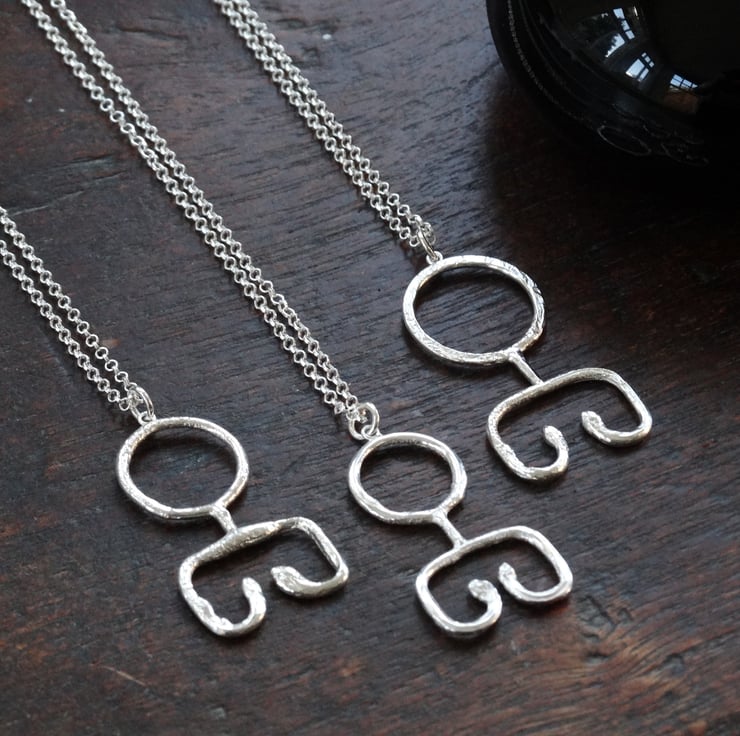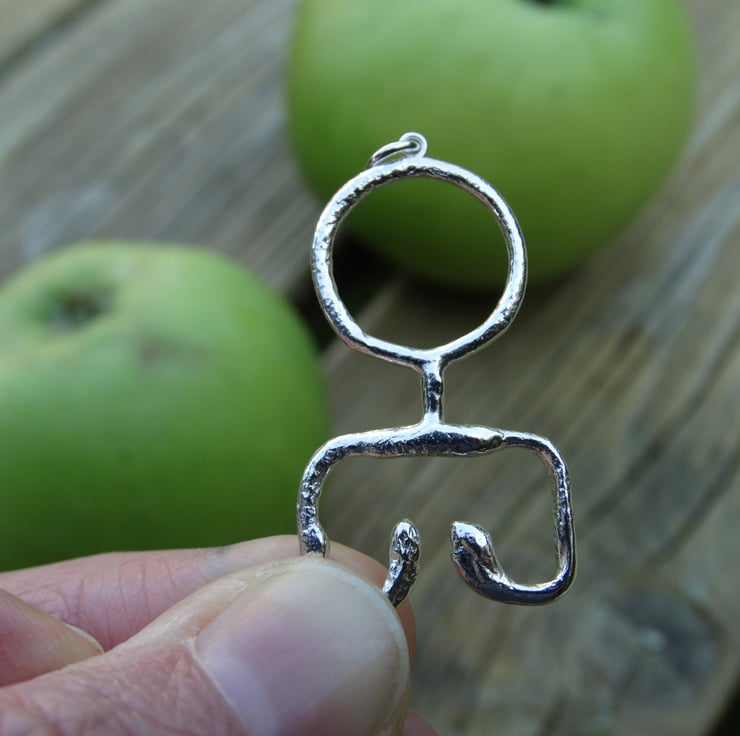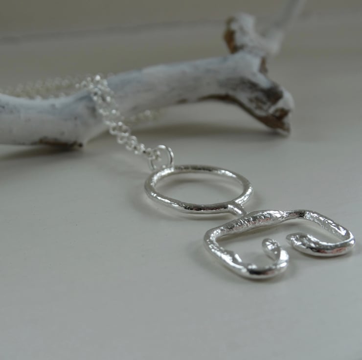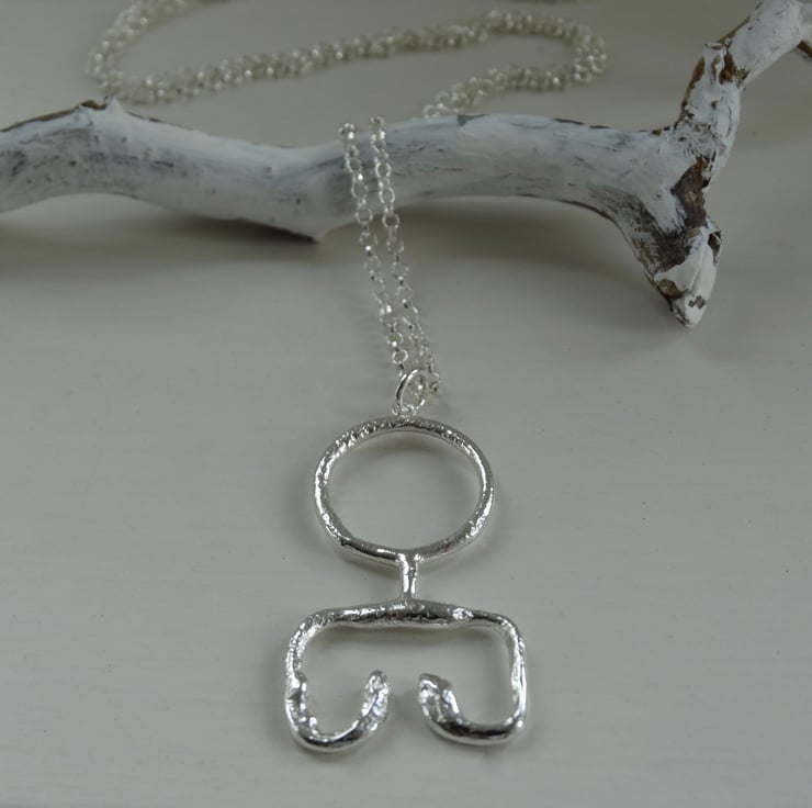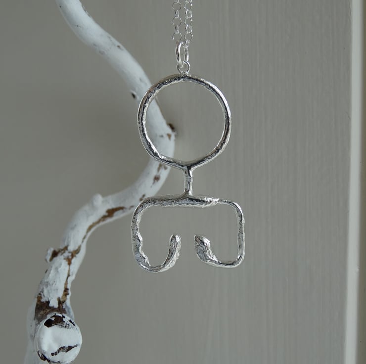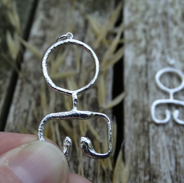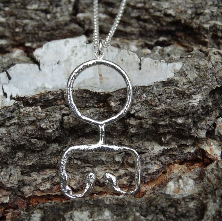 Taking inspiration from a Viking key design this sterling silver pendant has been crafted by hand from Eco Silver wire and heated to give the silver an ancient, worn and imperfect appearance. The surface is deliberately pitted and uneven in some places, and has a more fluid look in others. It has been finished all over with a brass brush to achieve a glowing shine.