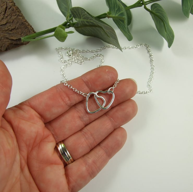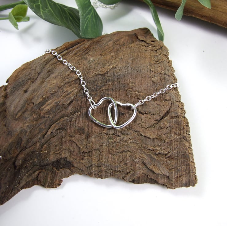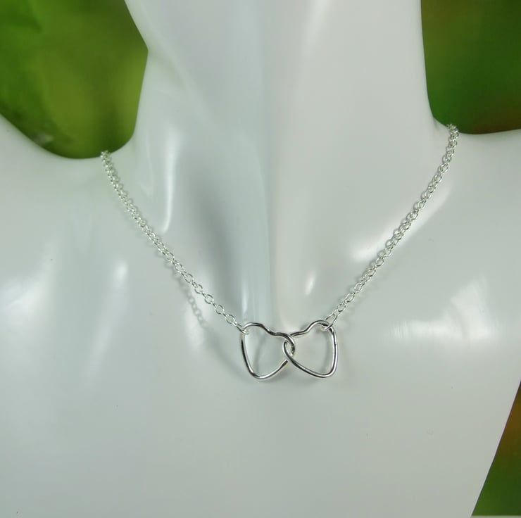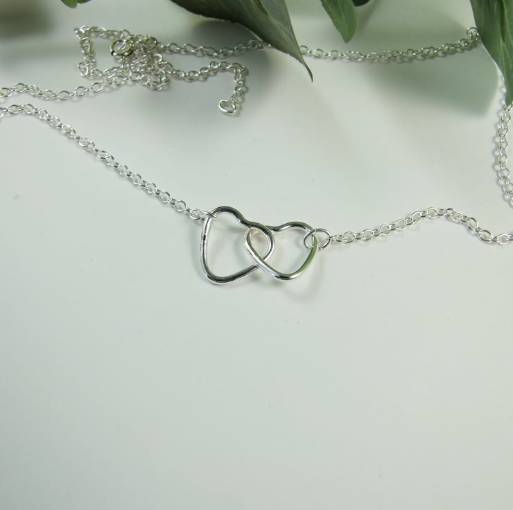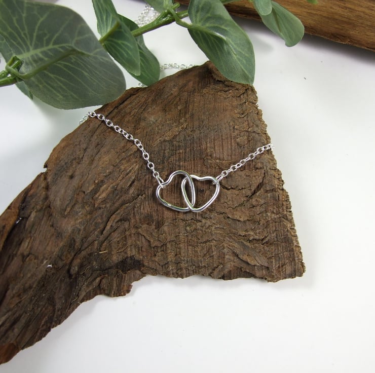 Interlocked Hearts Necklace. Sterling Silver Hearts Joined Together. A perfect sized Letter Box Gift. This can be posted directly to the recipient with your message printed on a gift card for you. Please note your message in the notes to sellers box