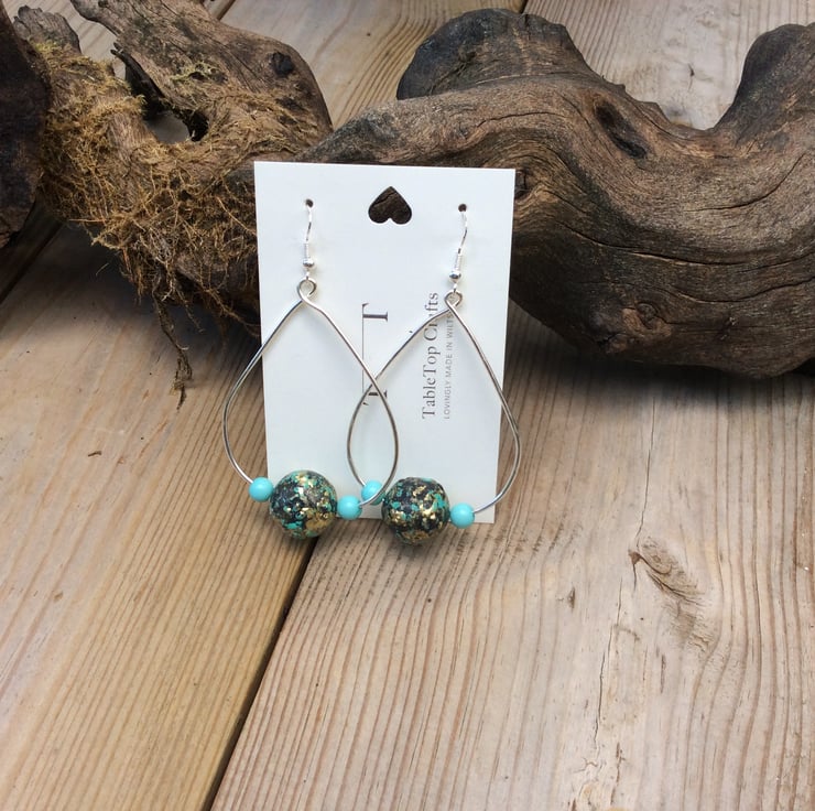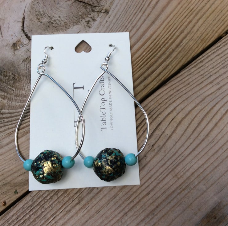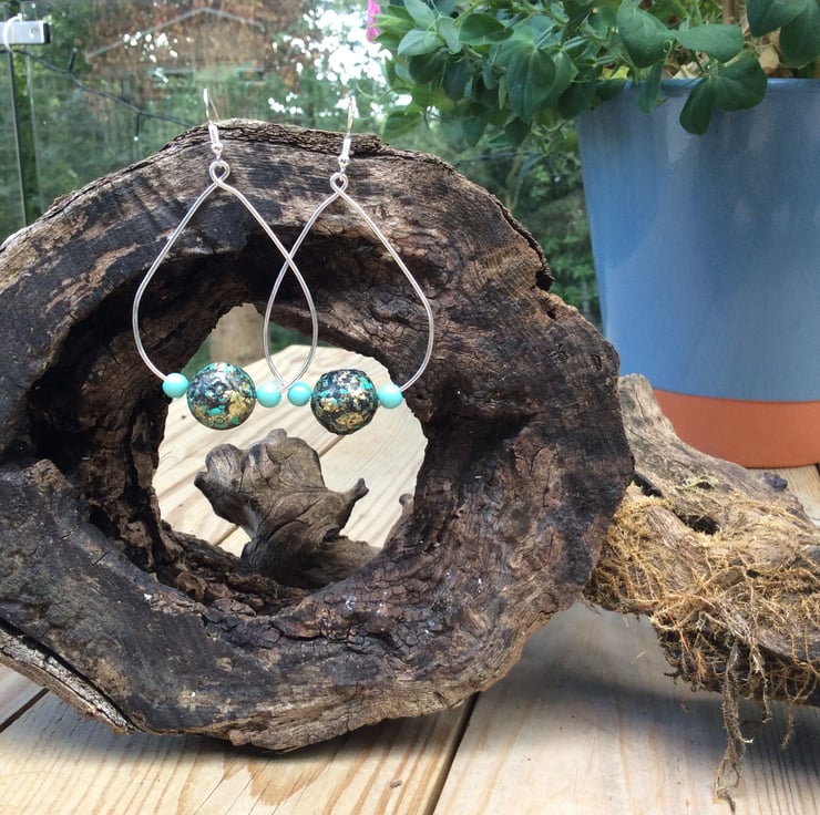 Fab statement piece, silver wire and silver piercing, 8cm total length, with gorgeous turquoise beads, definite one off, I have no more beads like this.