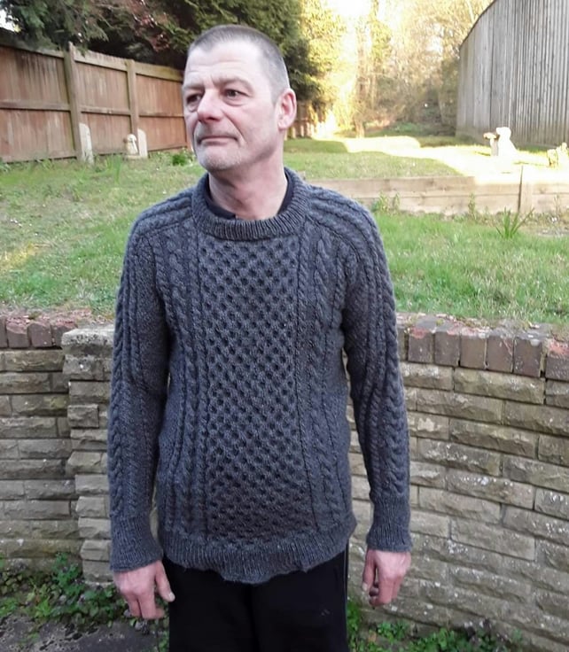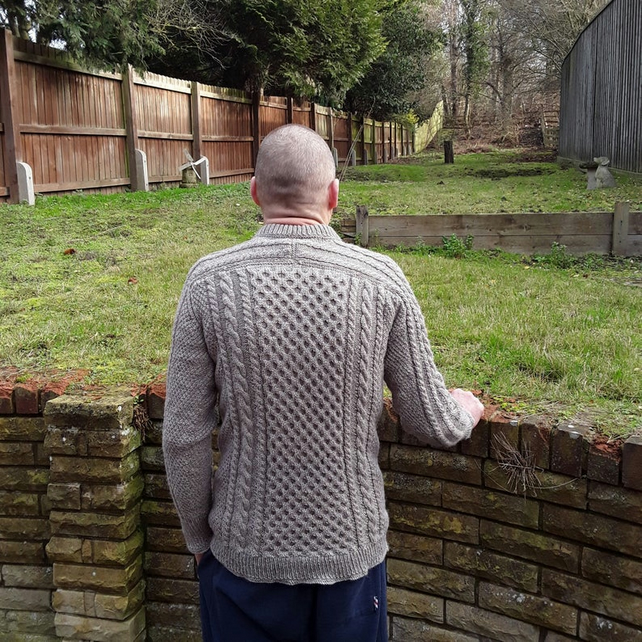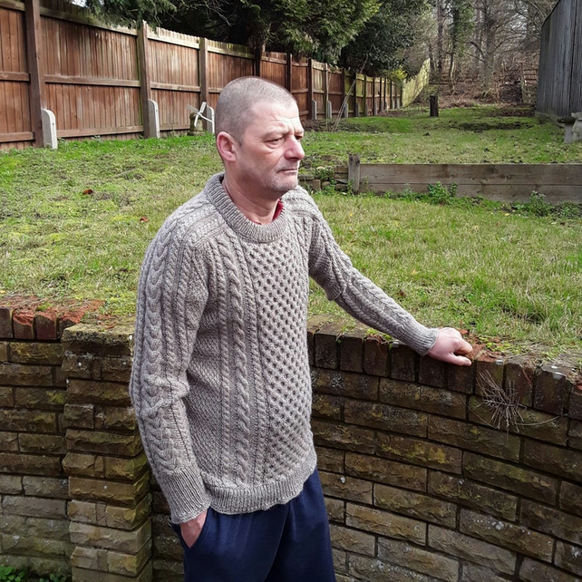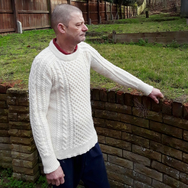 Hand knitted boys mens aran style jumper sweater 13/14yrs to mens XXXL 100% wool - Aran knits - men's knitwear - knits for men - boys jumper