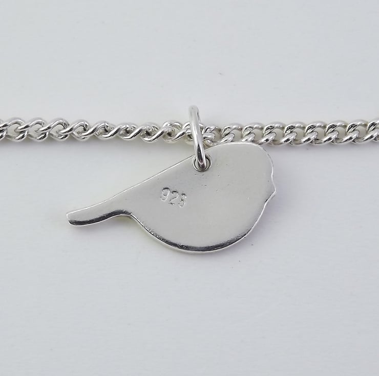 It comes on a sterling silver curb chain in lengths of 8.5, 9, 9.5, 10 or 10.5 inches (approximately 21.5, 23, 24, 25.5 or 26.5cm)