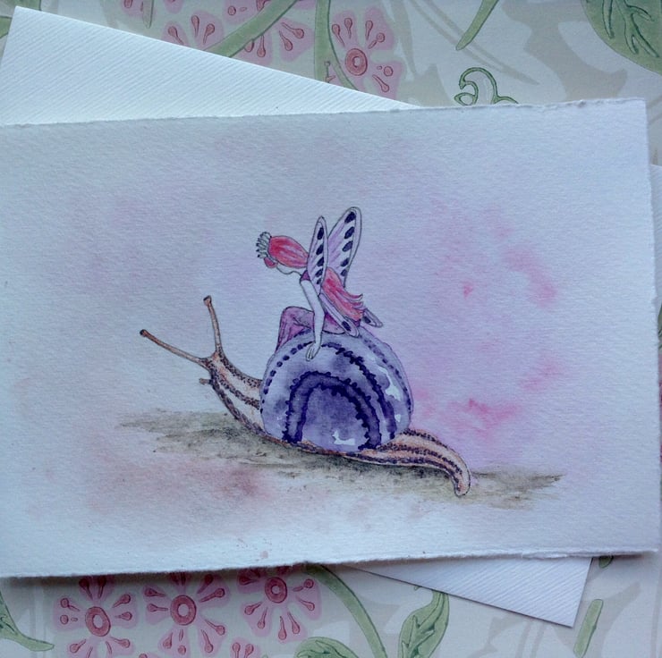 This card is a hand painted on a Fabriano watercolour card using shimmer watercolour paints. It measures 17 x 10cms and is supplied with an envelope. It is blank inside for your own special message.