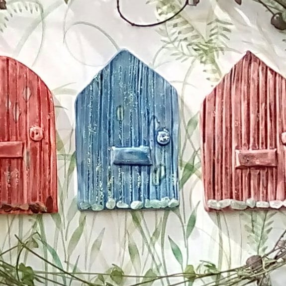 Each fairy door is unique, some have an added door handle or letterbox, they are decorated with different glazes, some having a crystallised or two tone colour. I've then added an extra bit of sparkle with some glitter, gems or semi precious stones.