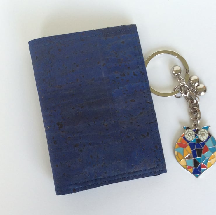 Card holder, blue cork fabric