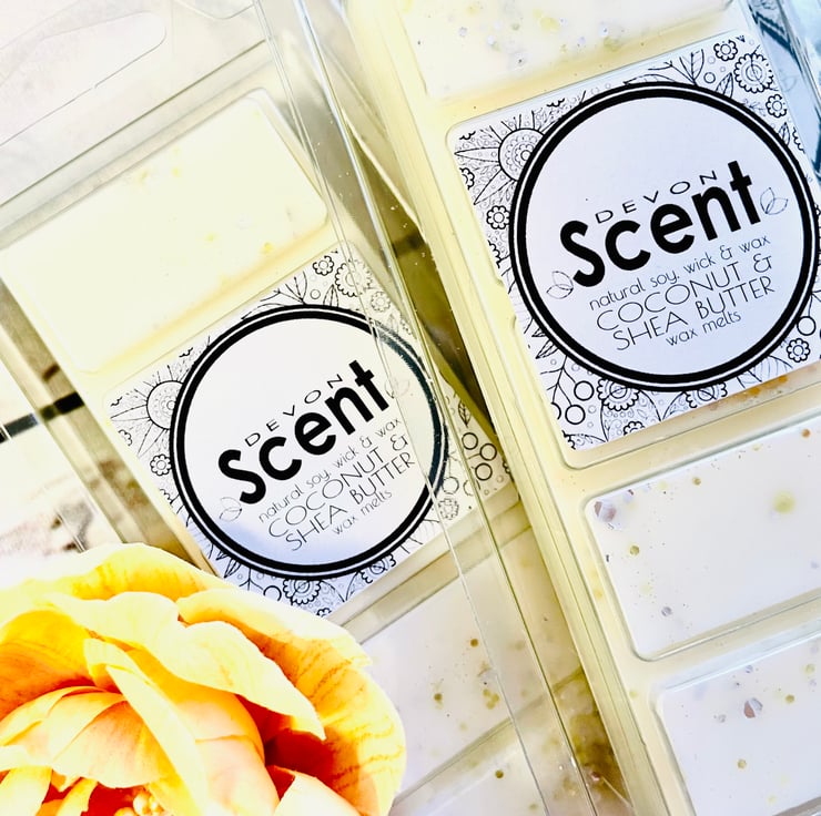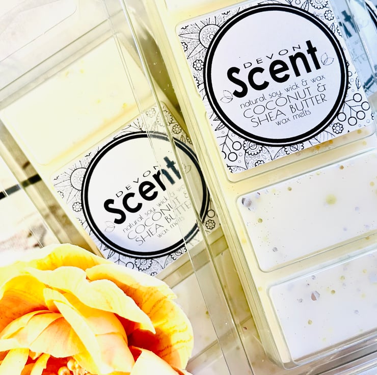 Our highly fragranced Coconut & Shea Butter Snap Bar Wax Melts have a beautiful and creamy coconut accord with supporting floral tones of jasmine, lily, heliotrope, hawthorn and violet on a base of vanilla, tonka, amber, sandal, cedar and caramel.