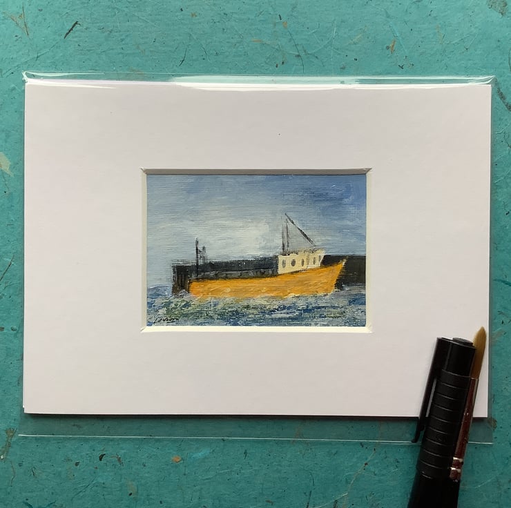 Fishing boat - original acrylic, miniature painting