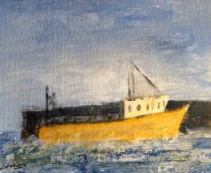 Fishing boat IV - original miniature acrylic painting on acrylic paper.