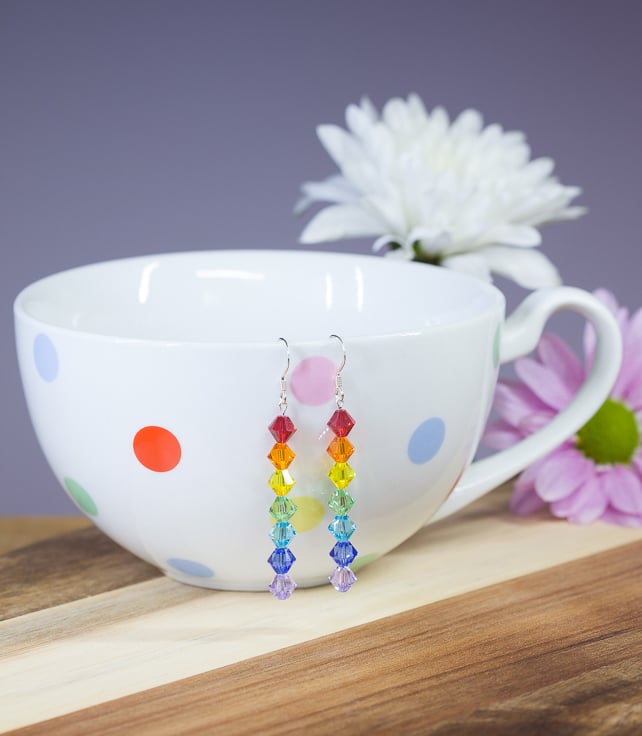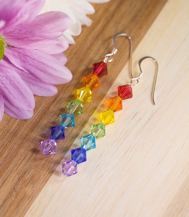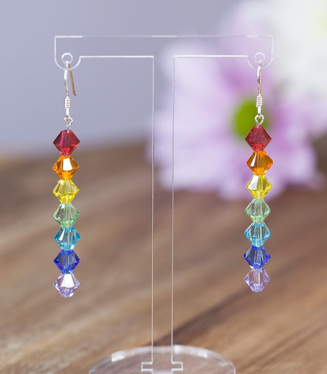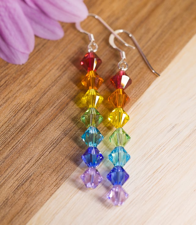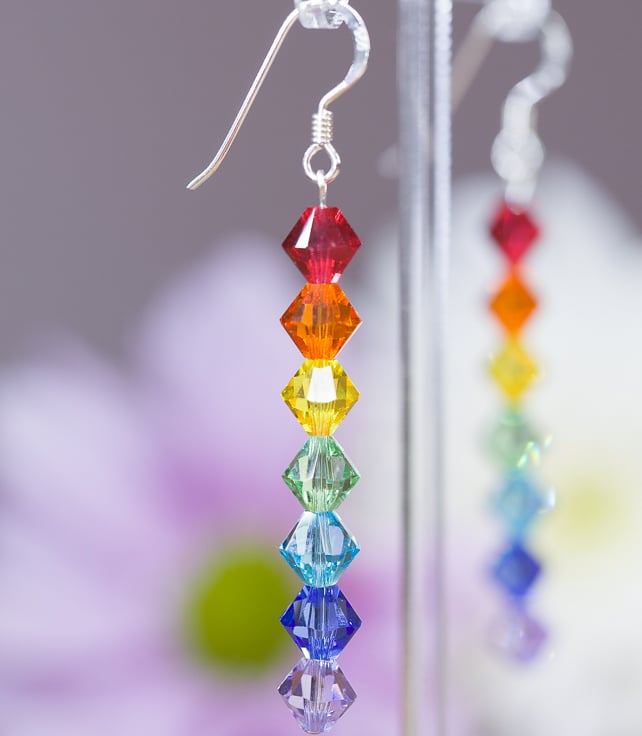 With genuine Swarovski 6mm bicones in rainbow colours. Swarovski crystals are lovely and sparkly.