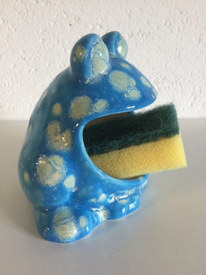 Here we have one of my ceramic frog sponge holder. This item can also be used to hold soap or various items.