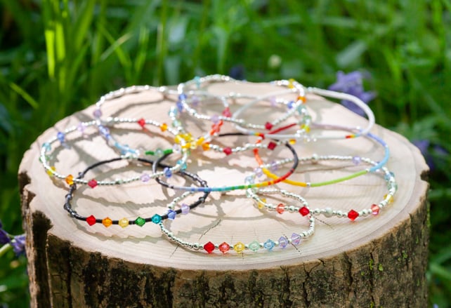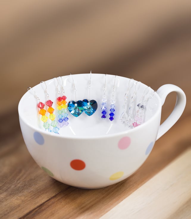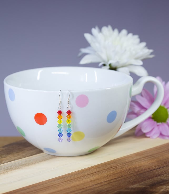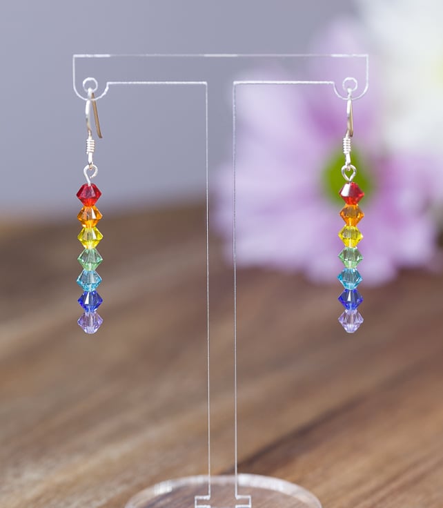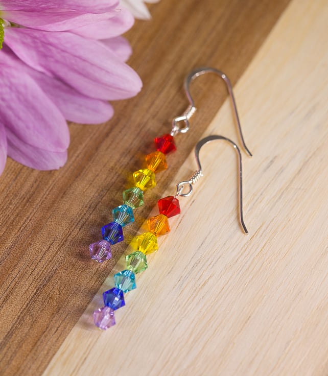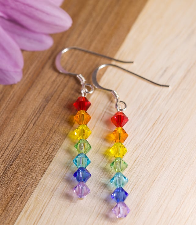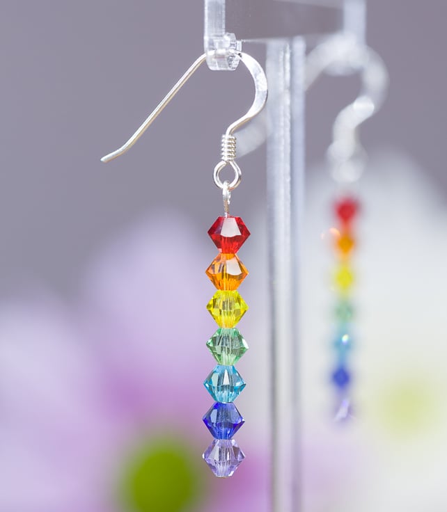 With genuine Swarovski 4mm bicones in rainbow colours. Swarovski crystals are lovely and sparkly.