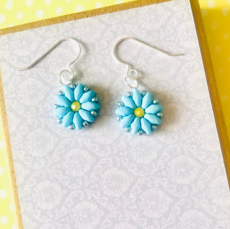 Pretty Czech glass beaded flower on a sterling silver earring- beautiful blue glass beads with lemon centre bead. Would make a lovely gift & Summer earring!