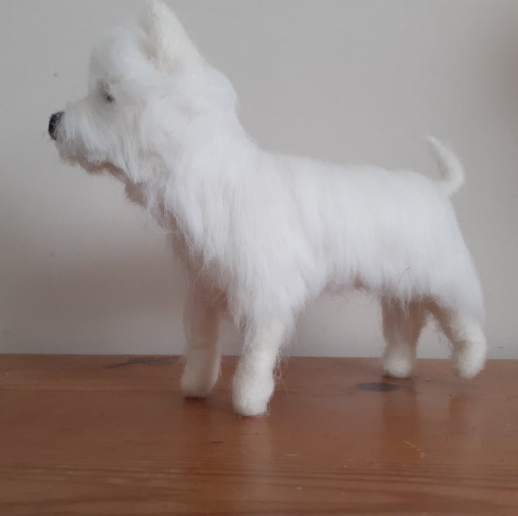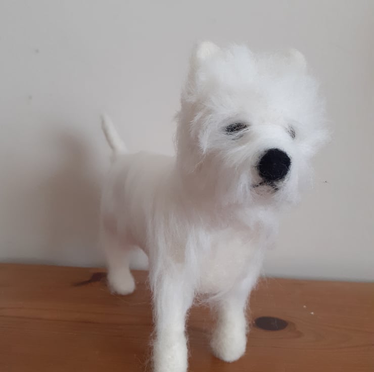 All wool needle felted on a wire armature so that you can easily pose him as desired, legs and body will bend, .