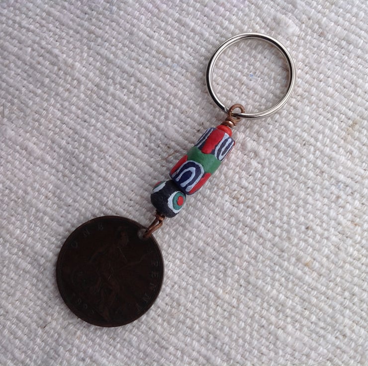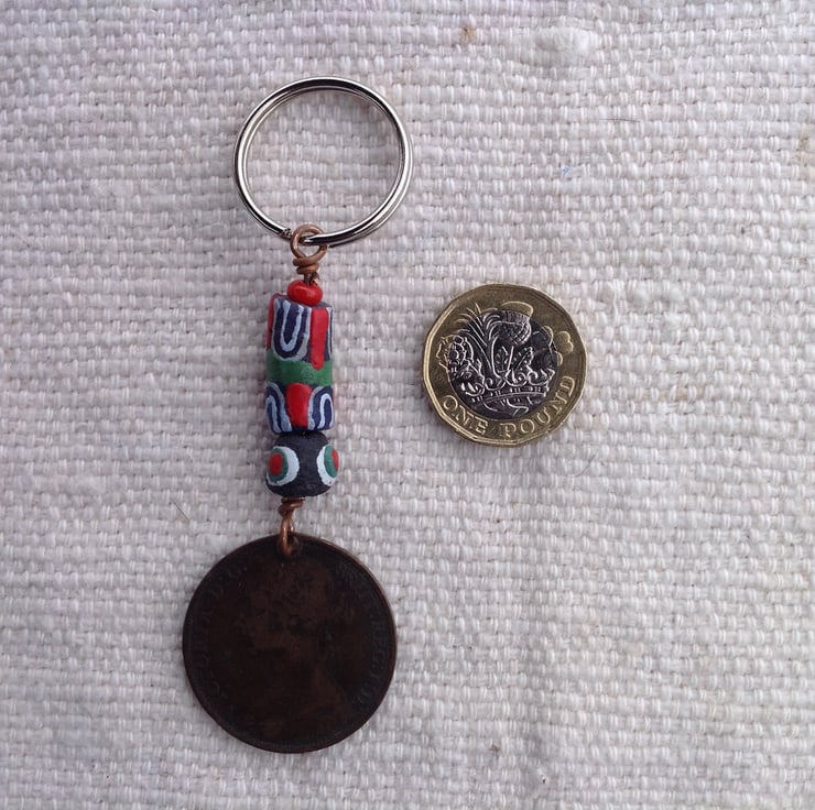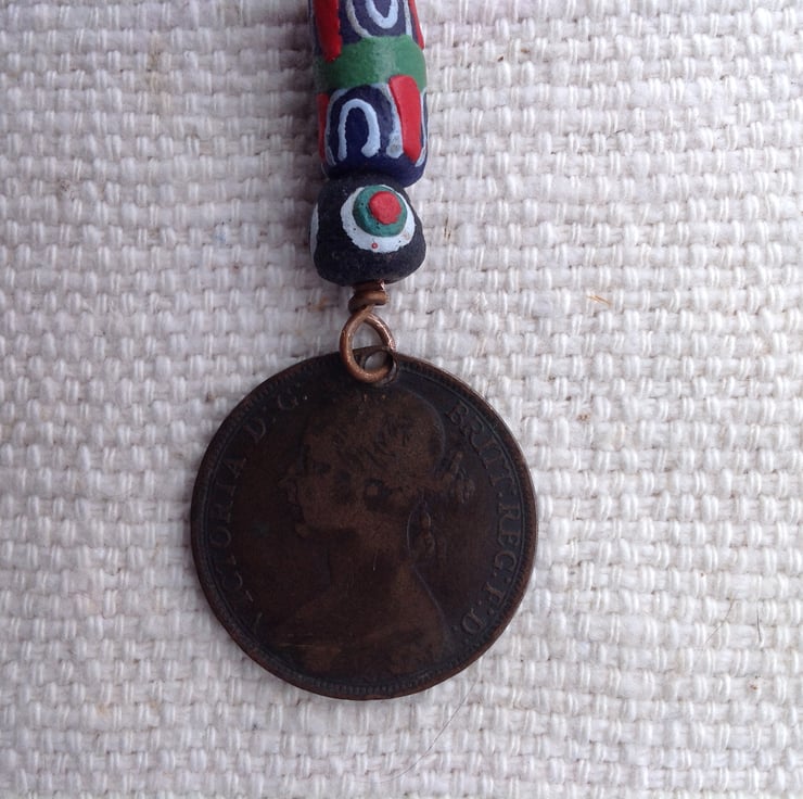 Design: At the time this penny was produced, Europe was exporting beads to Africa by the boatful. These days it's the other way round and Africa is selling beads to us. Here are two colourful examples from Ghana alongside the 'bun' penny.