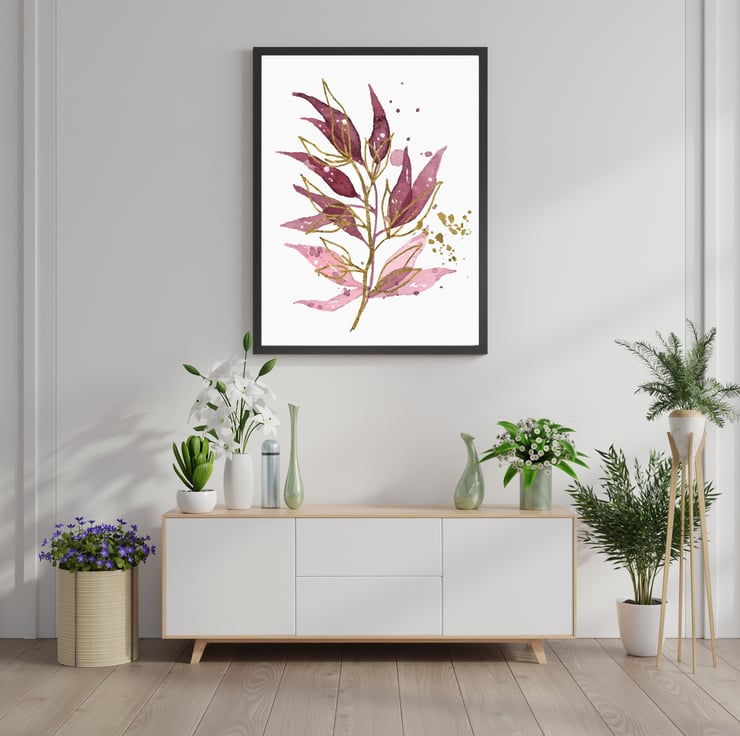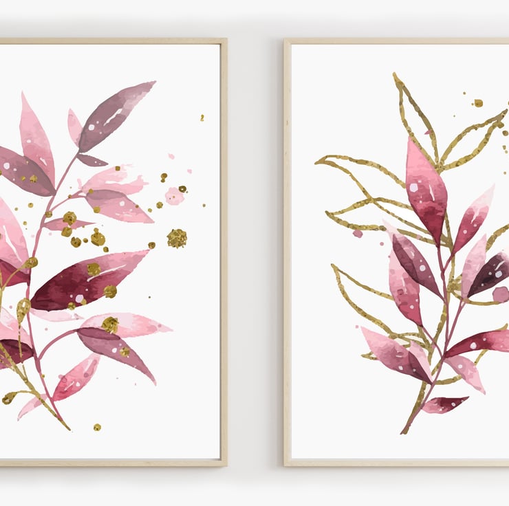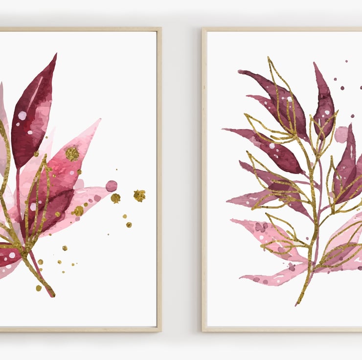 Watercolour leaves wall prints, plants wall decor, leaf wall art prints