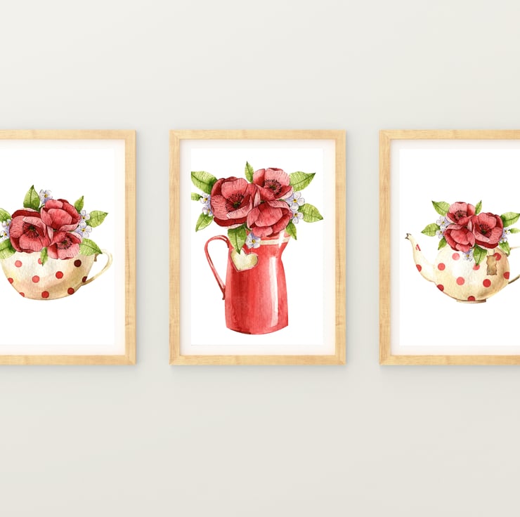 Poppy wall prints, Poppy wall art, Flowers wall art, kitchen wall decor