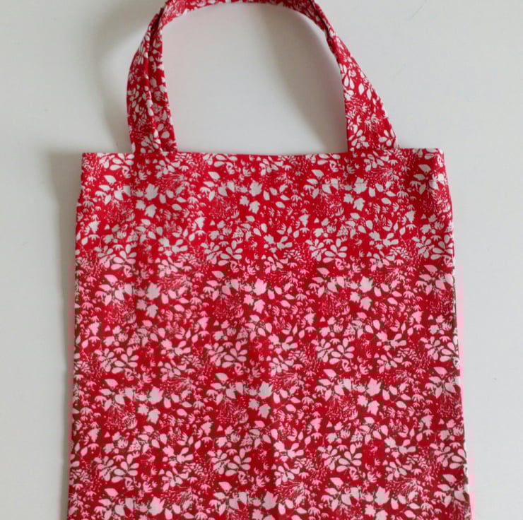 Cotton gift bag. Gift bag in Red with a leaf design. Suitable for any occasion