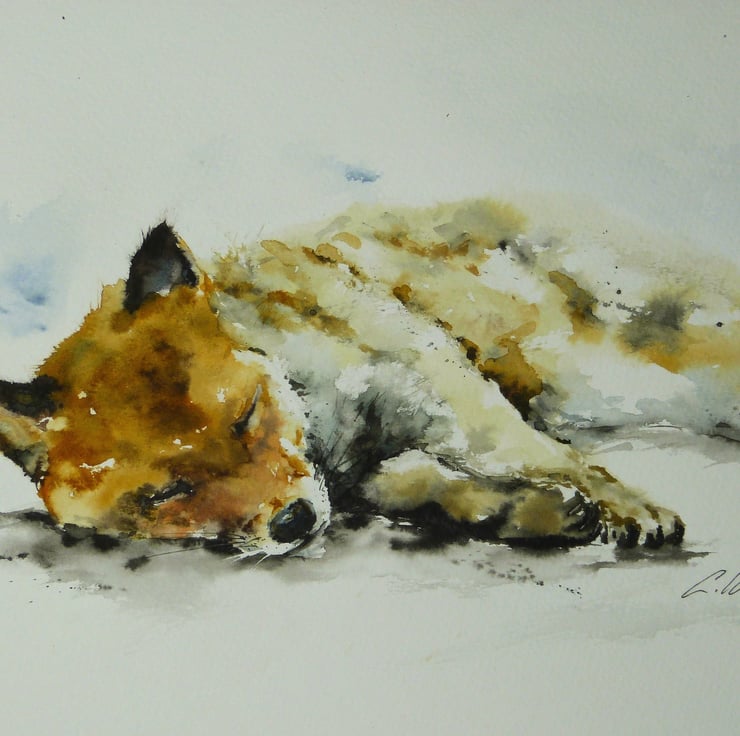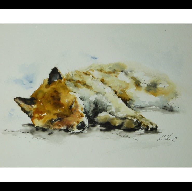 Sleeping Fox, A4 watercolour (297mm x 210mm).