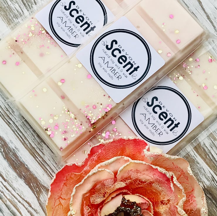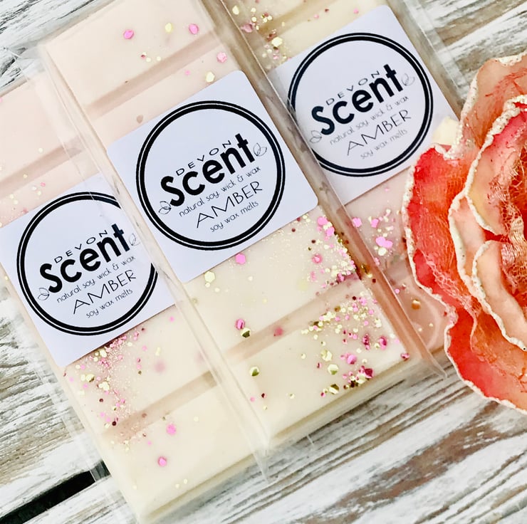 Our highly scented long lasting scented Amber Snap Bar Wax Melts are similar in scent to Amber Cocoon by MBrown.