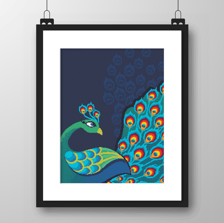 023 - Beautiful Peacock Series No 1 - PDF cross stitch/tapestry chart by Vivsters. No delivery costs - PDF file straight to your inbox. Start stitching straight today!