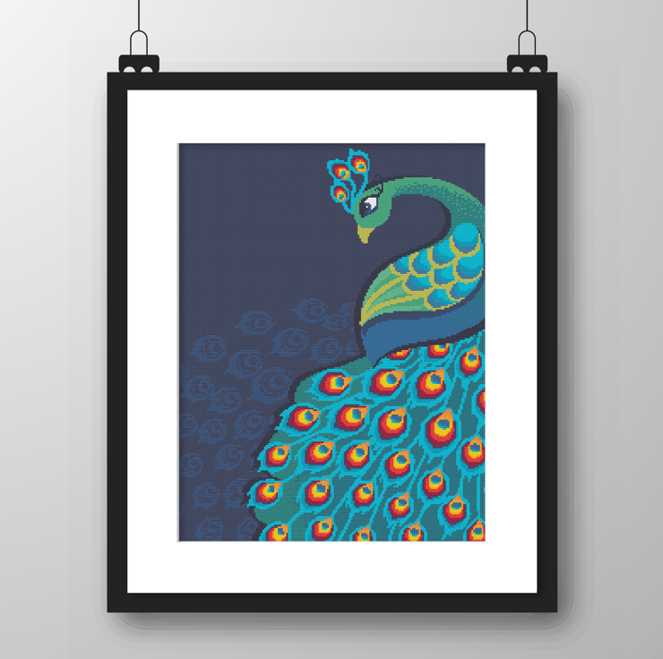 023 - Beautiful Peacock Series No 1 - PDF cross stitch/tapestry chart by Vivsters. No delivery costs - PDF file straight to your inbox. Start stitching straight today!