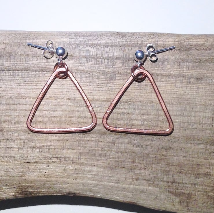 These lovely earrings have been handcrafted in copper and have been given an attractive hammered finish.