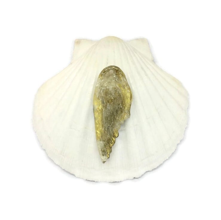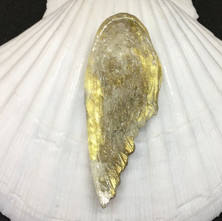 Gold and white angel wing brooch with roll over clasp at the back. Made to order.