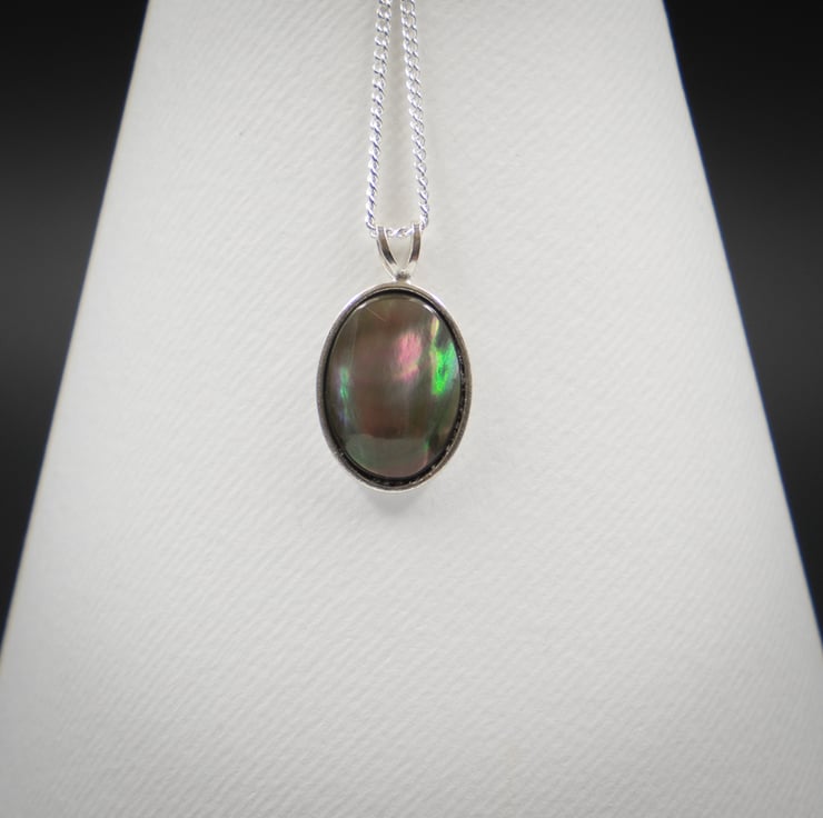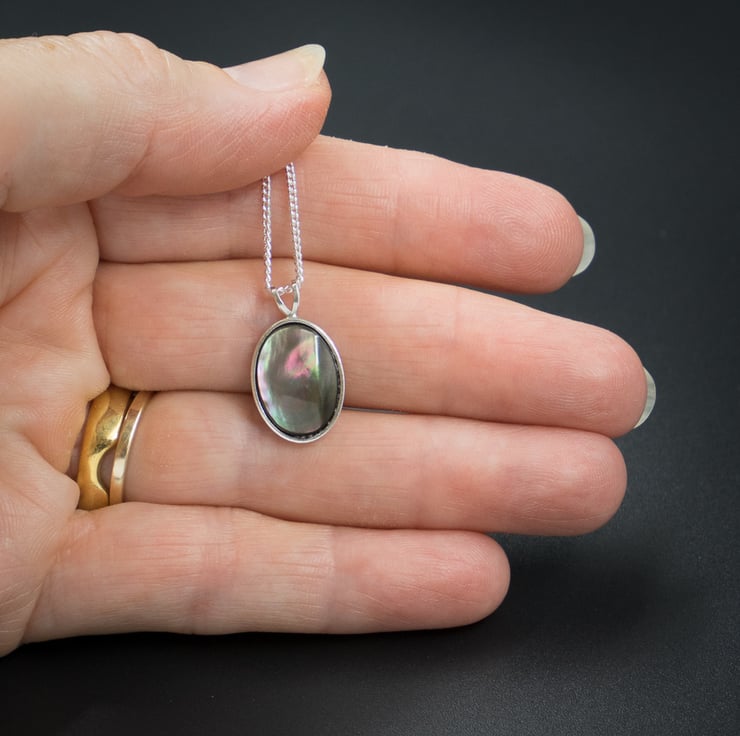 Black lip shell sterling silver pendant necklace, shell jewellery