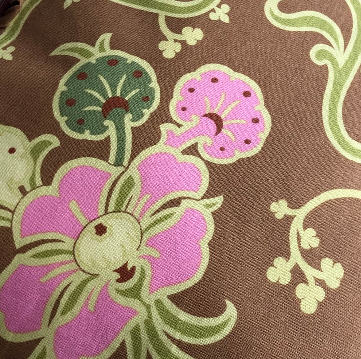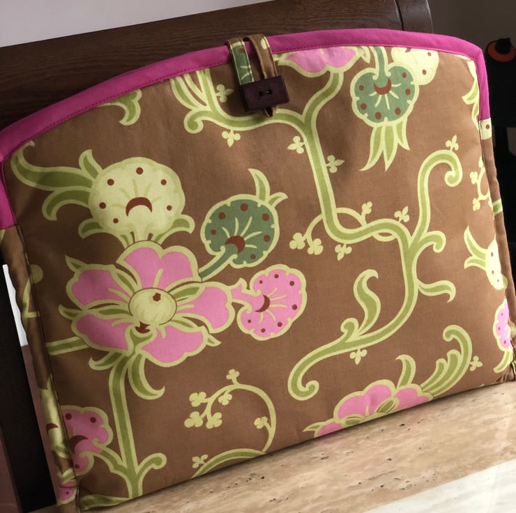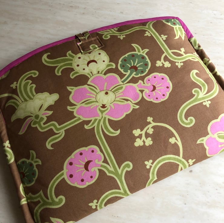 This beautiful laptop sleeve is carefully sewn with a piece of 100% cotton fabric which is designed by Amy Butler in a range of Gypsy Caravan and is called Stash.