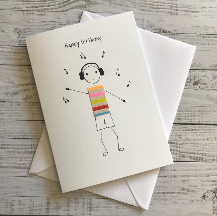 Each of my cards are hand drawn by me and not printed (apart from the funky paper used for the shirts).