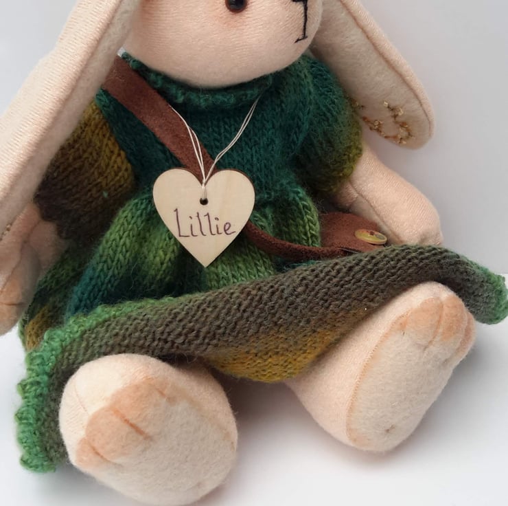 I have delicate hand embroidery in greens/mustards/golds to my inner ears, head gusset and one side of my head, I am a truly unique little bunny.