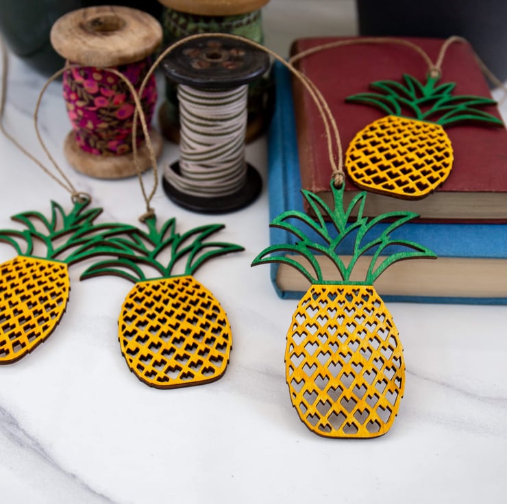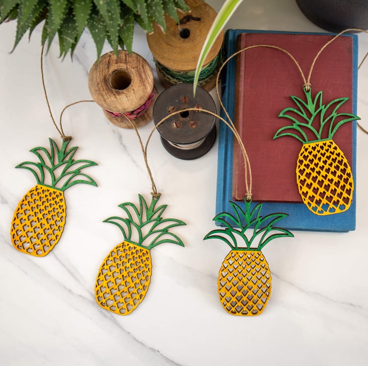 Add a splash of sunshine to your space with this super fun pineapple bunting! Each juicy little pineapple is laser cut from FSC certified wood, hand-painted in bold yellow and green, and strung on natural vintage twine for a look that’s both playful and a little bit fancy.