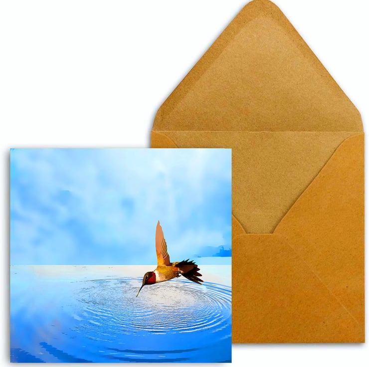 This Hummingbird Card is printed on really sturdy 310gsm cream acid free high quality paper, from my favoutite Company Paper Spectrum, and is wrapped in a protective biodegradable cellophane pouch.