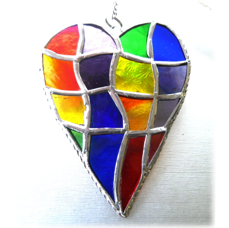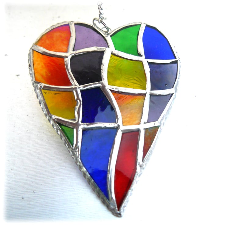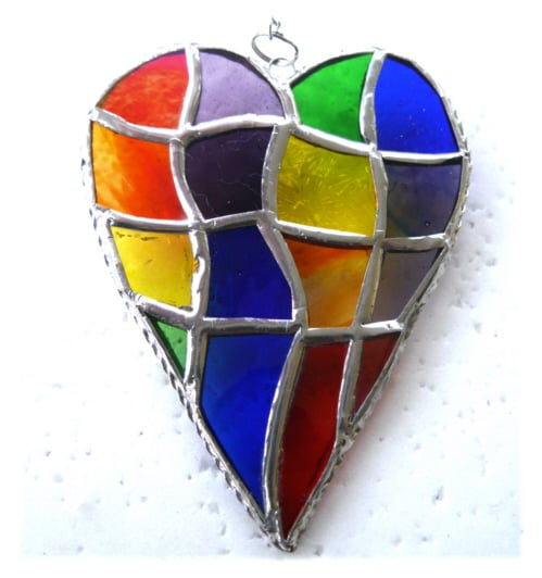 This is a stained glass suncatcher made using the Tiffany copper foil technique.