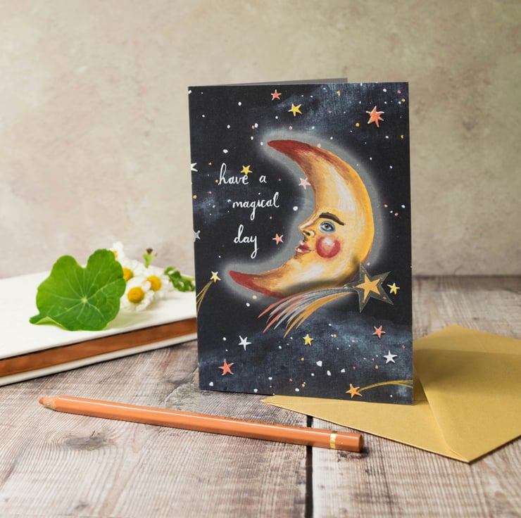 Crescent moon greeting card, A6. Any occasion card