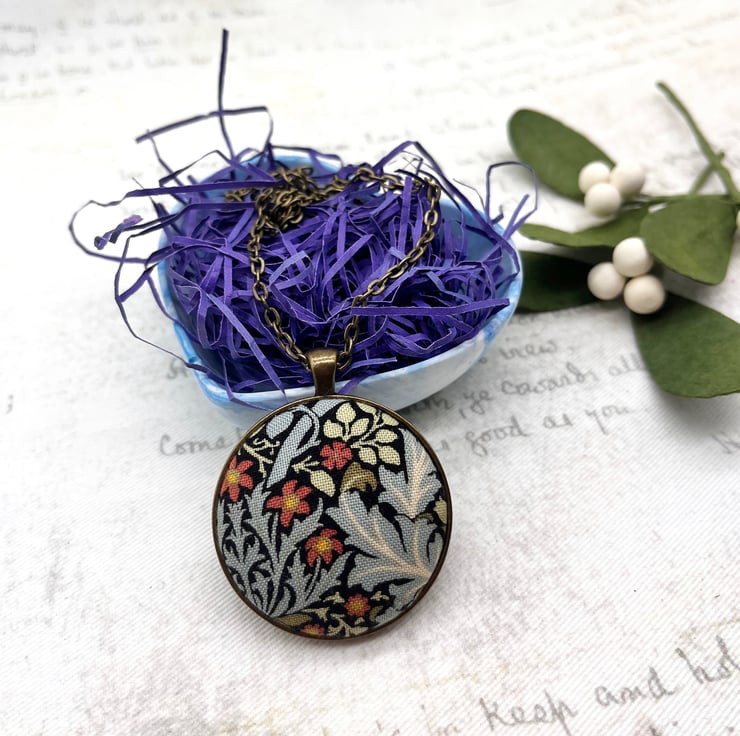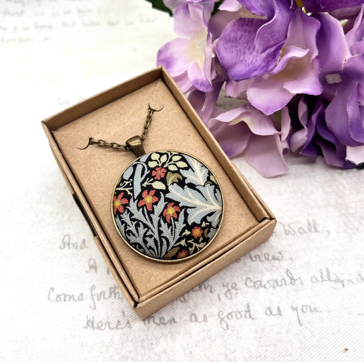 This lovely pendant will come to you safe and carefully packaged in a hand folded (by me!) UK Made eco-friendly recycled kraft card jewellery box - perfect for gifting to the William Morris fan (or as a treat for yourself!).