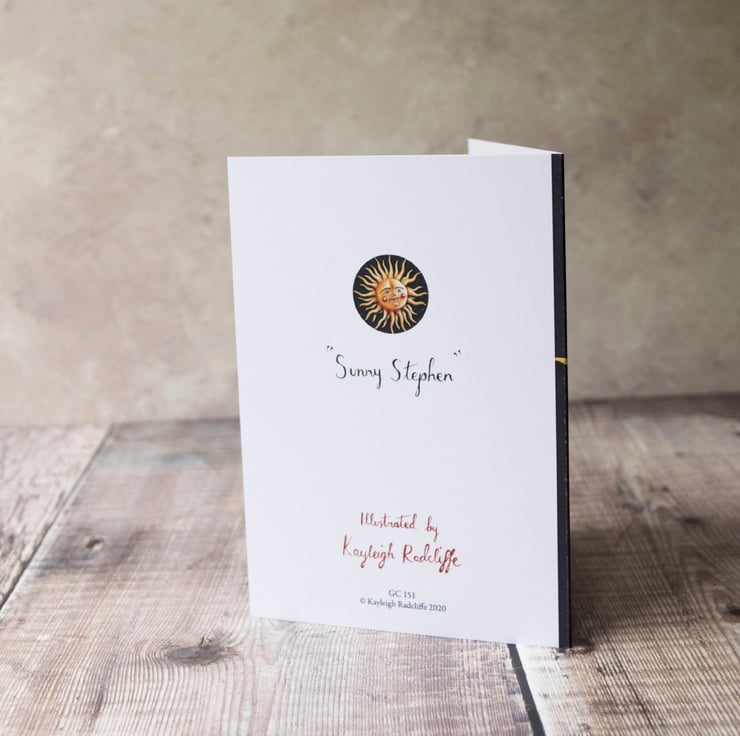 A6 greeting note card of my character Sunny Stephen. His toothy grin will get anyone smiling! Why not send him to a loved one for their Birthday, or send to a friend that needs a bit of cheering up?