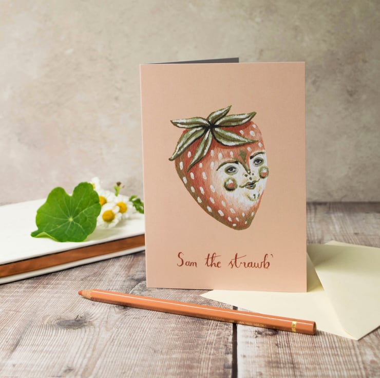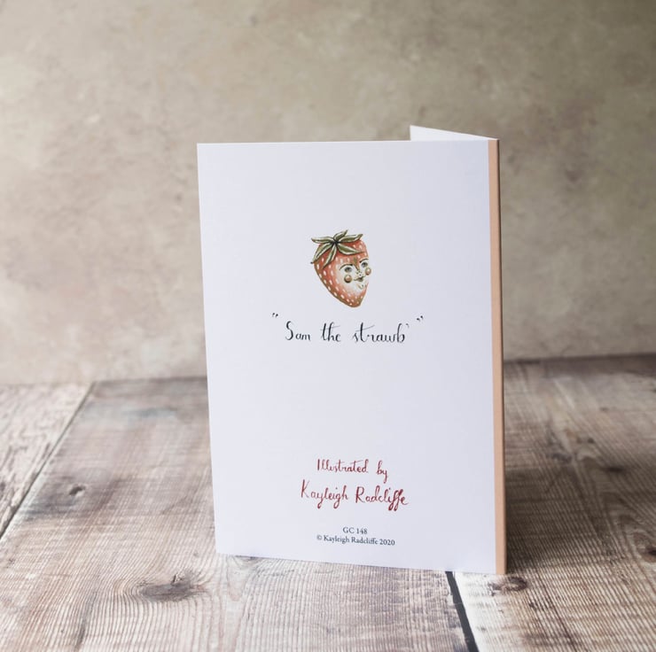 A6 greeting note card featuring my adorable Sam the strawb'!