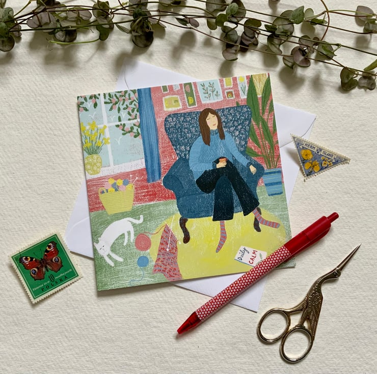 This is a blank greetings card, made from one of my original paintings, it measures 14.5x14.5cm and comes with an envelope. A lovely pretty card which oozes calmness