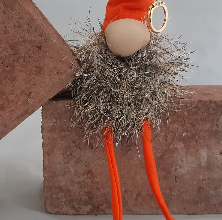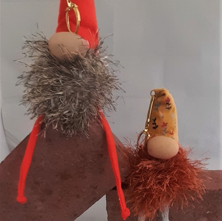 This adorable hand-stitched gnome is a delightful, handcrafted item that doubles as a keyring or bag charm. Each gnome features a gorgeous hand-knitted beard made from eyelash wool, often found in charity shops, adding a cozy, textured touch.