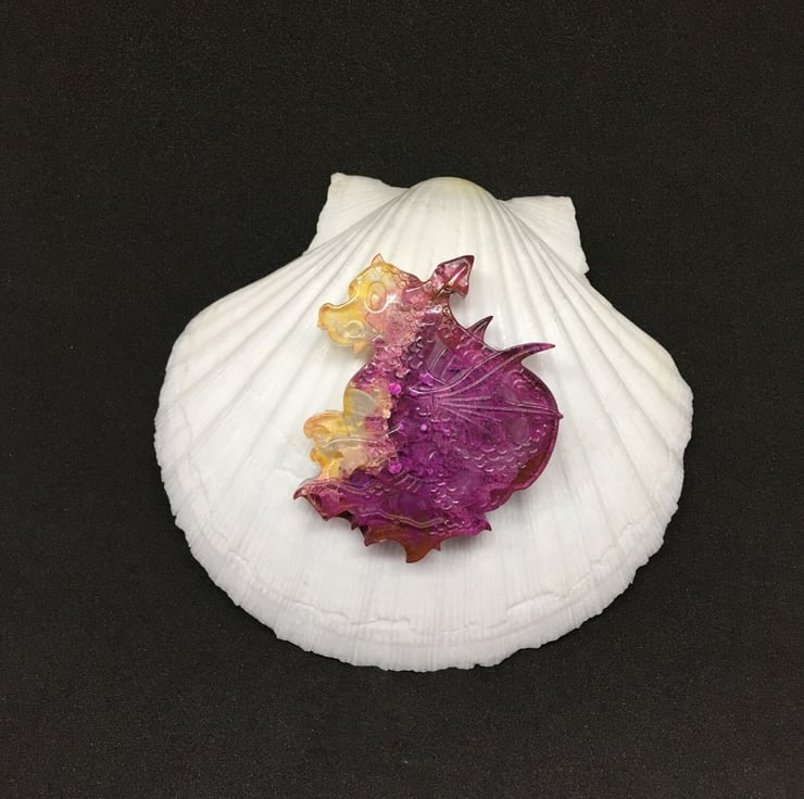 I love making dragons and the colour combination of pink and yellow and the reaction of the alcohol inks when I add them in to the resin creating unusual patterns, which is known as a petri dish effect, makes for a stunning unique item.