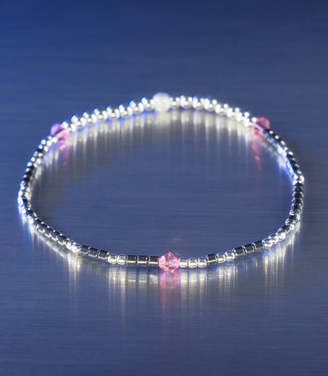 With stretchy jeweller's elastic to slip over the wrist (no clasp).