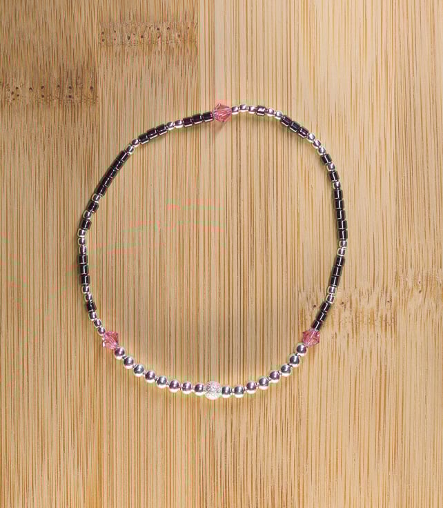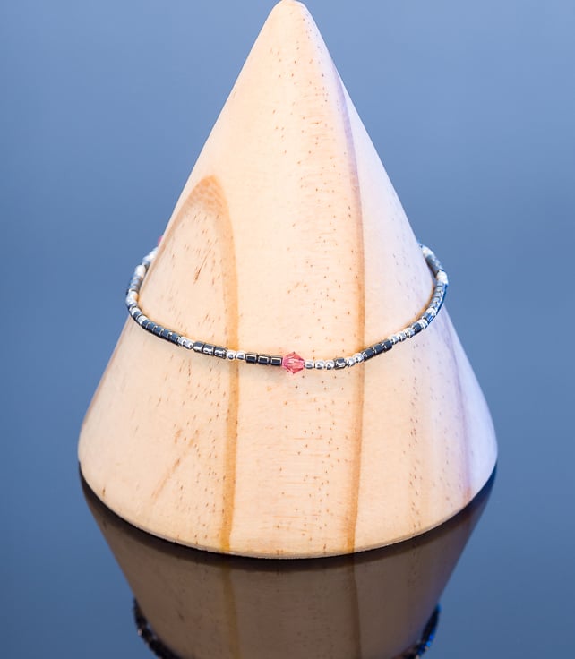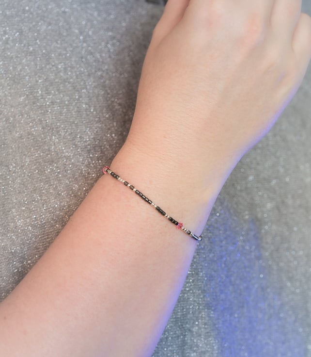 I love the idea of morse code jewellery. It is a hidden message for the wearer. The silver beads are the dots and the hematite 2mm tubes are the dashes.