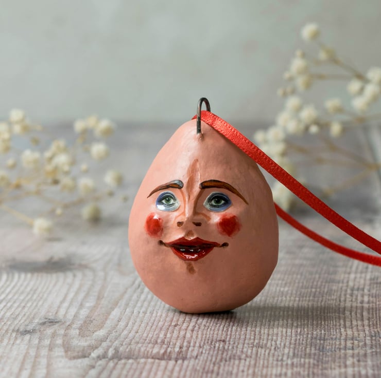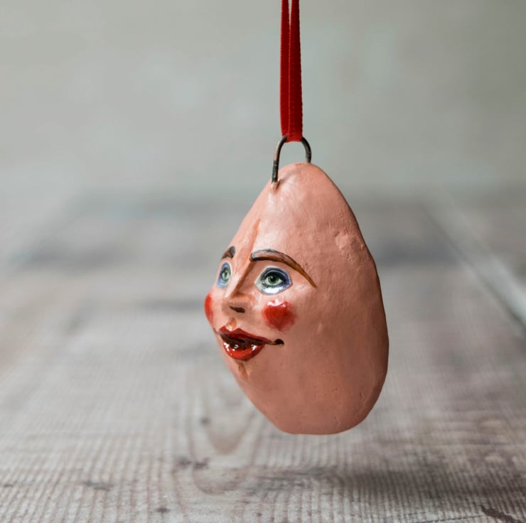 Cheerful and bright, Willie will be sure to make you smile. He is a hand crafted bisque ceramic hanging decoration made by my own hands.