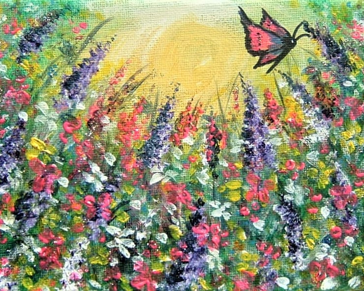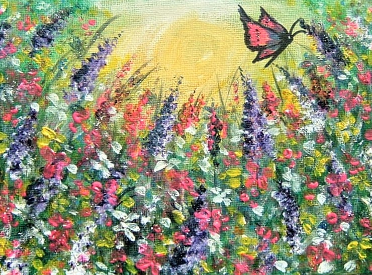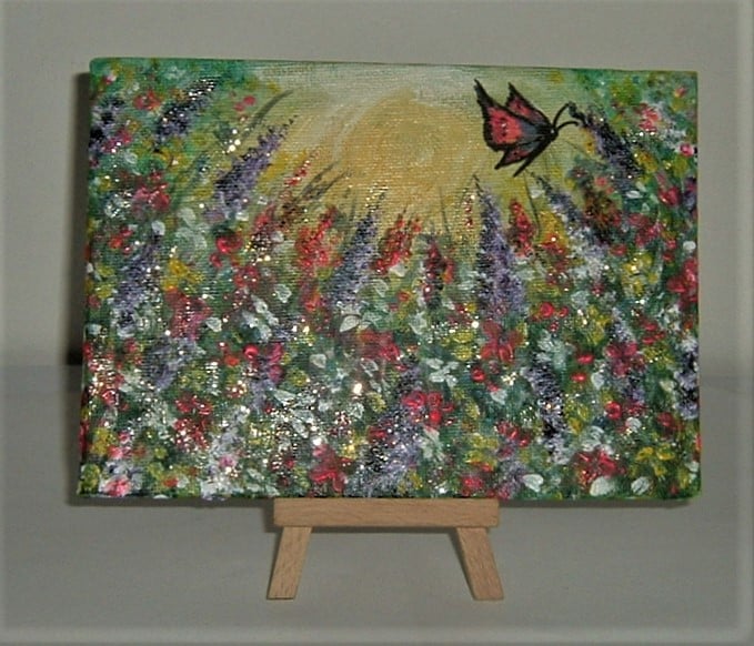 this pretty painting has been created using quality artist's acrylic and glitter on solid canvas board.
