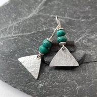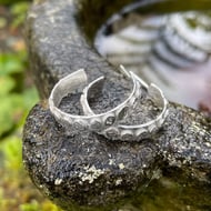The silver surrounding the stones has a beaten, textured finish, and the metal has been polished to a shine.