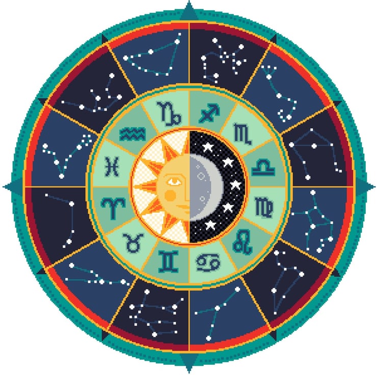 Cross stitch pattern - Zodiac Series - Celestial Sun and Moon centre piece - Astrological Horoscope - cross stitch chart by Vivsters. No delivery costs - PDF file straight to your inbox. Start stitching straight today!