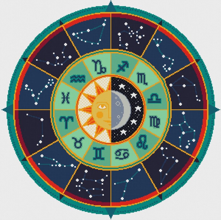CELESTIAL CENTRE - Astrological Horoscope - Star sign cross stitch/tapestry chart Instant download by Vivienne Powers in the modern Scandinavian style. This is a monster of a chart, please see the finished sizes for this one is a bit of a challenge!