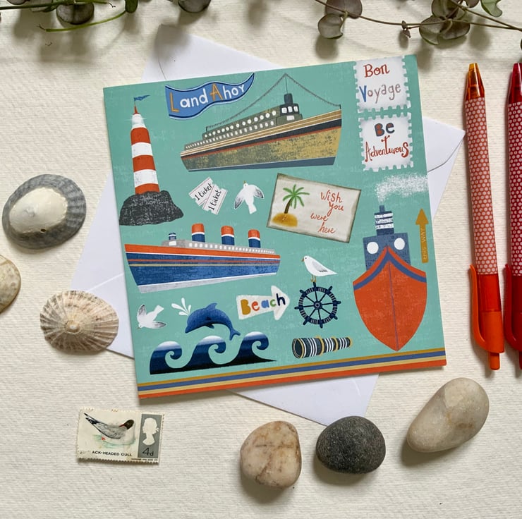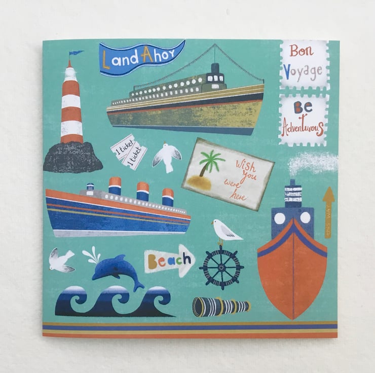 This is a blank greetings card, made from one of my original paintings, it measures 14.5x14.5cm and comes with an envelope. Suitable for a birthday card or Bon voyage card.